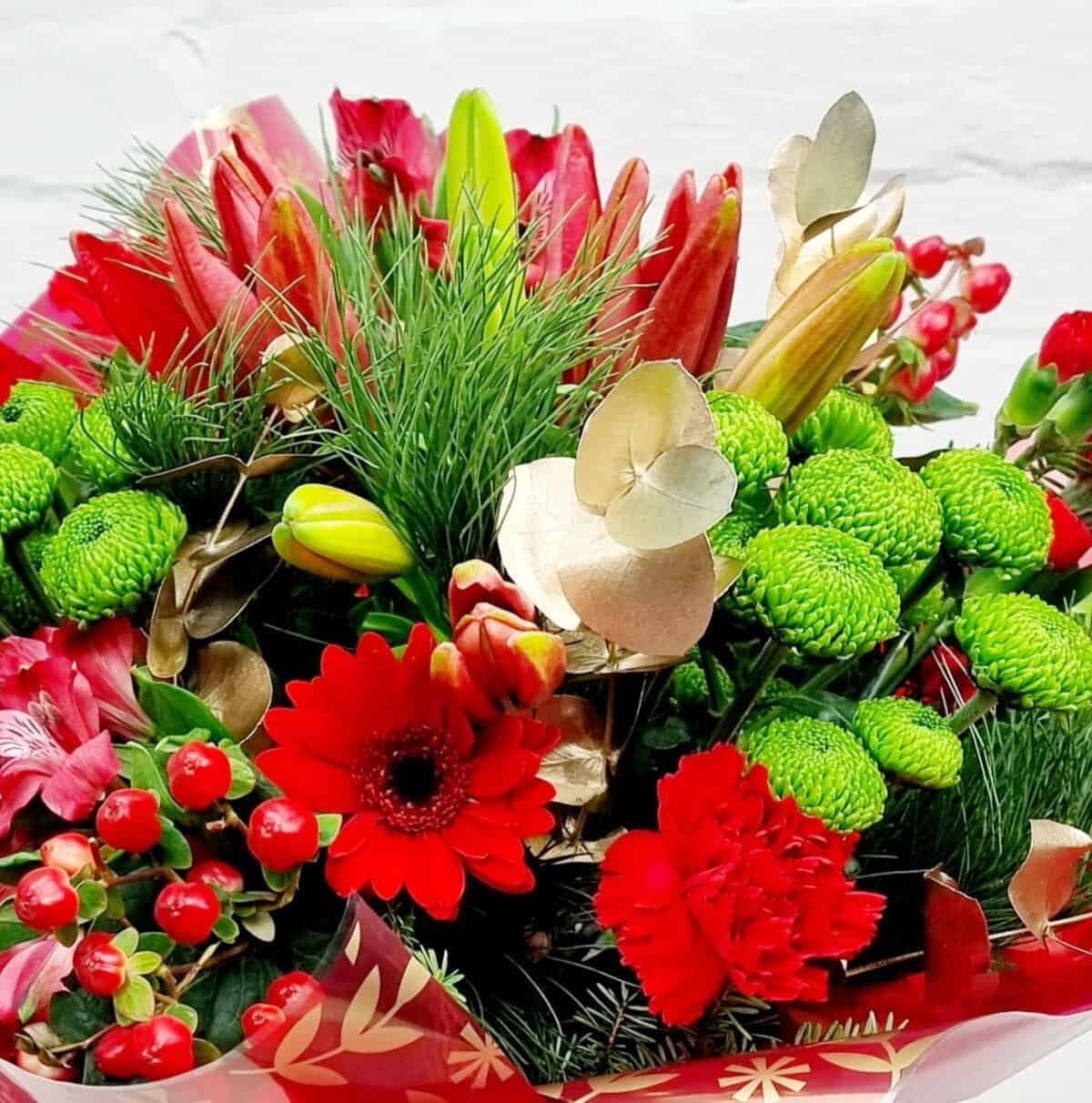 We’ve selected traditional Christmas colours of Reds, Golds and Whites, with gorgeous seasonal varieties of flowers and foliage.